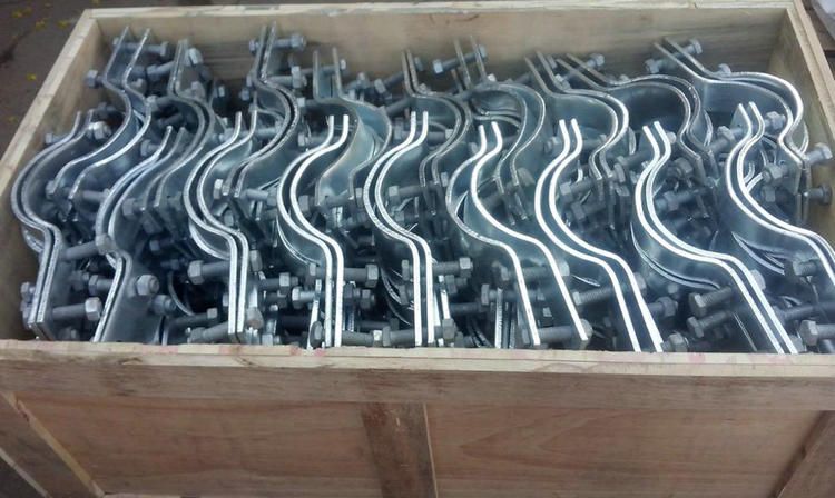 Las abrazaderas del poste se utilizan para alinelos postes con farmes de acero, y se consisten generalmente en dos, tres,o cuatro pedazos de bandas y ciertos pernos y tuercas del número.