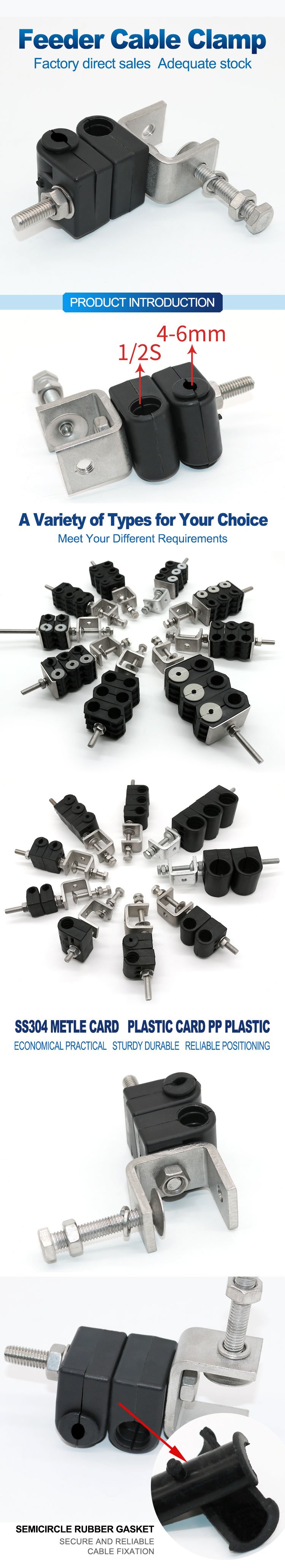 La abrazadera del cable alimentador se utiliza ampliamente en la instalación in situ para fijar los cables coaxidel alimentador a las torres base, las abrazaderas del cable alimentador proporcionan una forma eficiente de administrar y asegurar el sistema de instalación del alimentador.