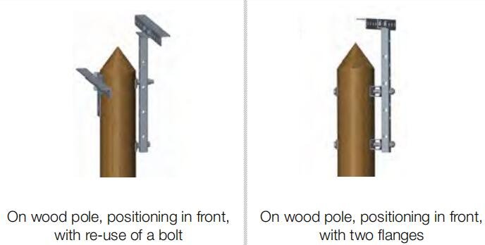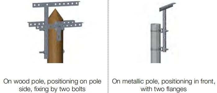 • Posicionamiento sobre un poste compuesto de madera, metálico o plástico, o dentro de un poste metálico de forma cuadrada.