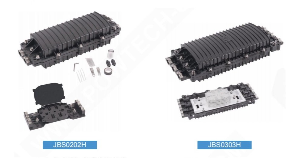 El cierre de empalme de plástico de tipo Horizontal de la serie JBS protege el empalme de fibra óptica al tiempo que proporciona una reentrada rápida y fácil sin costo. Puede ser instalado en antena, en alcantar, conductos y montado en postes. El cierre proporciona un rendimiento de sellado fiable, y el punto de empalme de fibra protegido en una cúpula de polipropileno nervque tiene altas características mecánicas y ambientales. Con puertos de entrada opcionales, el cierre es aplicable al método de ramien en línea o a medio tramo.