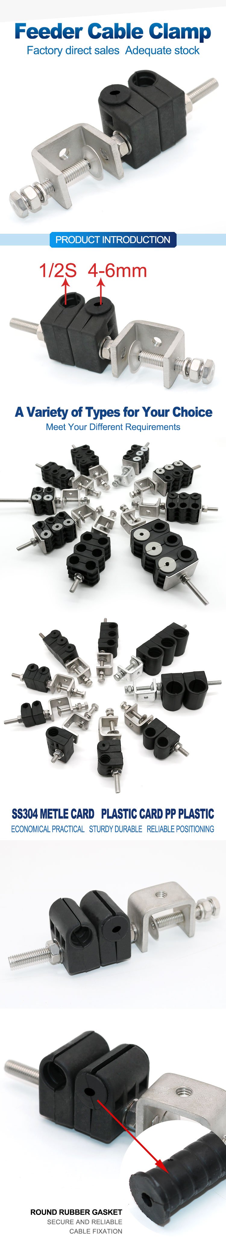 La abrazadera del cable alimentador se utiliza ampliamente en la instalación in situ para fijar los cables coaxidel alimentador a las torres base, las abrazaderas del cable alimentador proporcionan una forma eficiente de administrar y asegurar el sistema de instalación del alimentador.